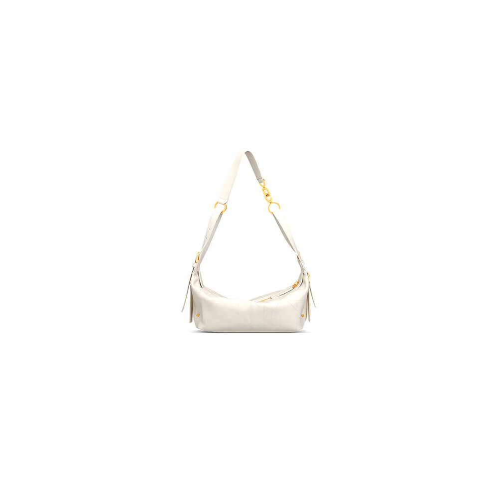 Leather strap and adjustable top handles with gold-finish metal CD hook