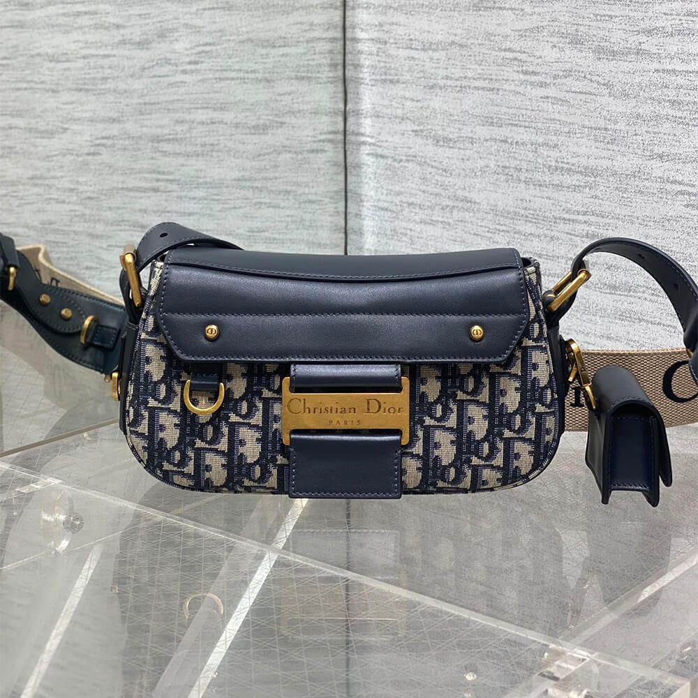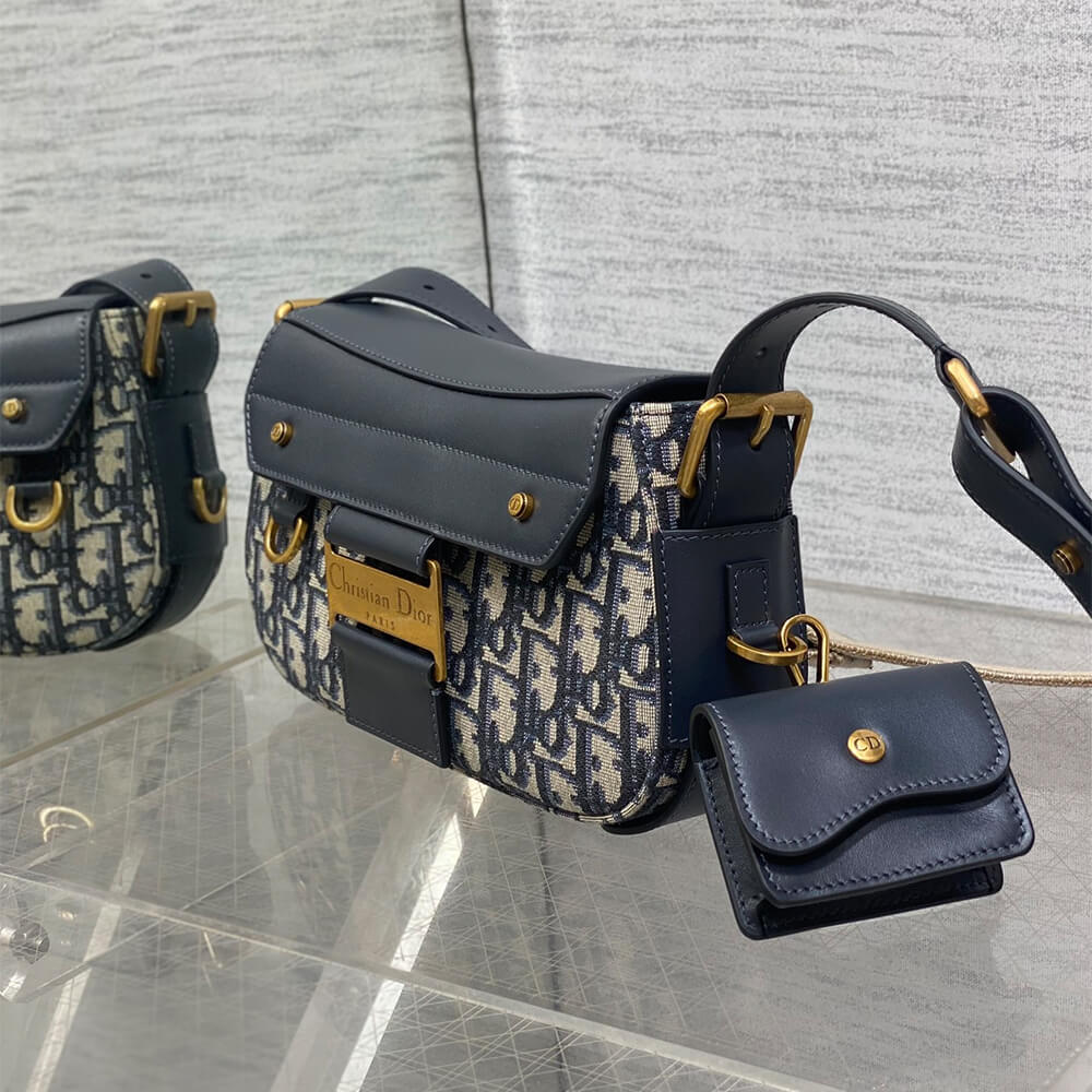 Blue Dior Oblique Jacquard and Smooth Calfskin