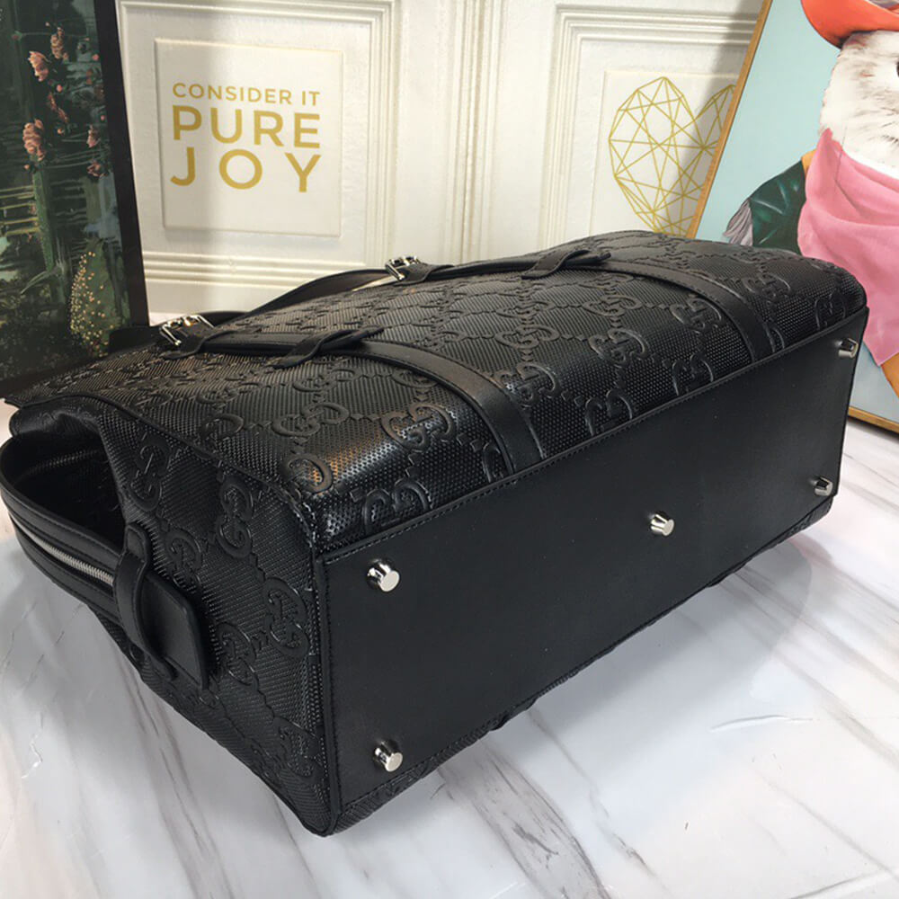 Black GG embossed leather