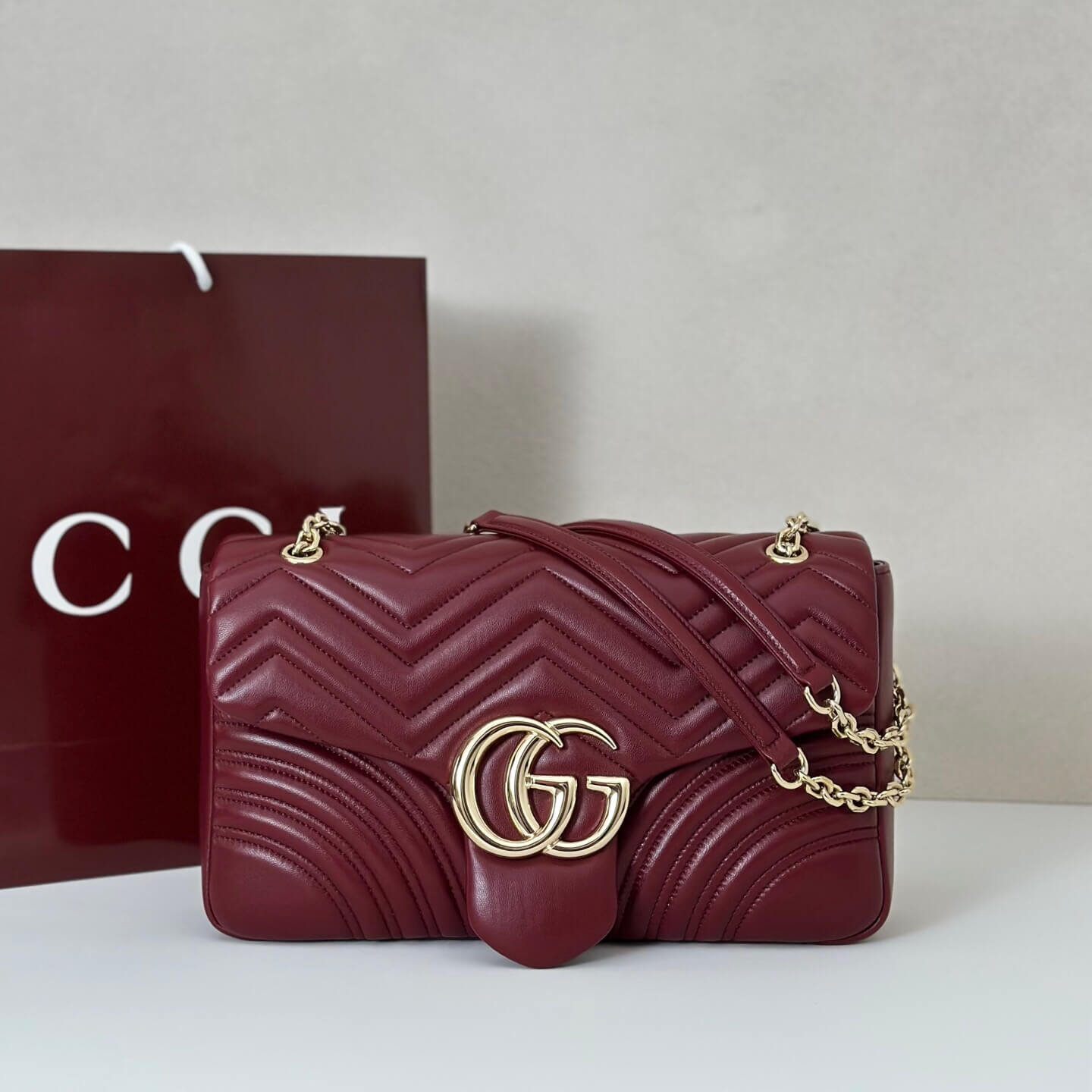 Gucci Rosso Ancora red matelassé chevron lambskin leather